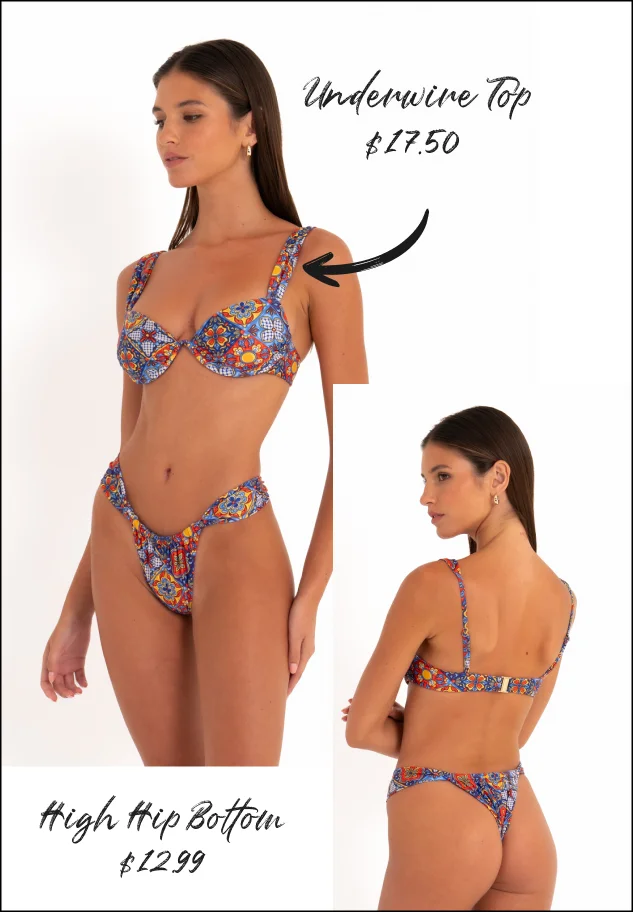 Example Order: A typical order may include 4 bikini tops & bottoms and 2 one-piece swimsuit in 4 colours.